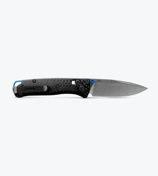 Compact with a touch of class. For those looking to elevate their everyday carry, look no further than the all-new 533-3 Mini Bugout®. Taking cues from its larger counterpart, the 533-3 makes the leap to CPM-S90V super steel and milled carbon fiber handle, featuring a blue anodized aluminum back-spacer and blue thumb studs. Merging signature lightweight utility with ultra-premium materials, the 533-3 Mini Bugout® sets a new standard for this popular line of sub-compact EDC pocket tools.