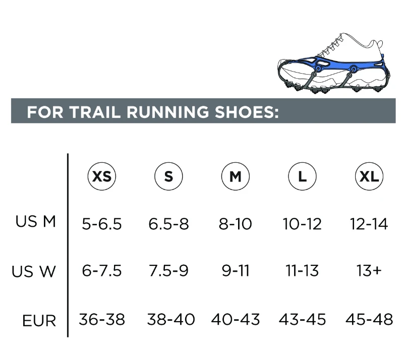Our go-to traction device that’s built for maximum versatility. Designed for winter running or hiking on a variety of surfaces, EXOspikes™ traction is at home on icy roads, snow-packed trails, and everything in between. Twelve ultra-durable tungsten carbide spikes underfoot provide an impressive amount of grip when you need it, and stand up to rocks and other abrasive trail features when you don’t. All in a very lightweight package that can be easily stowed away in a backpack.