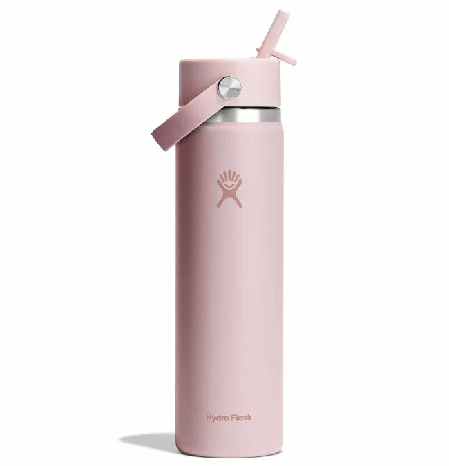 Flip it and sip it with the Hydro Flask 24 oz Wide Mouth Bottle With Flex Straw Cap. With a comfortable, flexible handle, the closeable, leakproof straw cap is easy to open and close with one hand, for on-demand hydration. Double-wall insulation keeps drinks cold up to 24 hours for cool refreshment. The slim design fits most cupholders, easily fits ice cubes and is dishwasher safe.