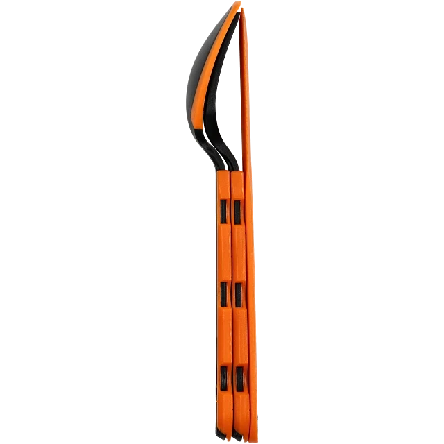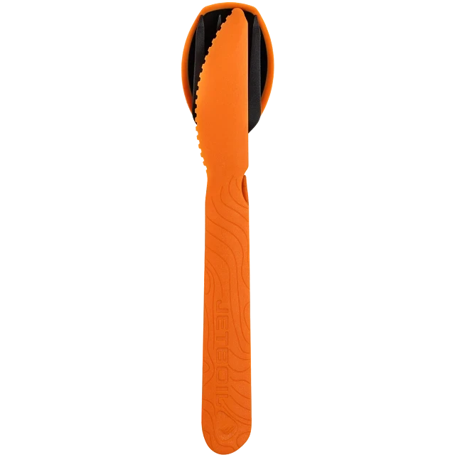 The perfect outdoor utensil set. Forget about the mess and hassle of cleaning on the trail. The new Jetboil TrailWare is designed to easily extend and reach inside a Jetboil cookpot or dehydrated meal package. The unique silicone edge spoon will easily scrape every morsel while minimizing scratches to the pot surface. All three utensils snap together for easy storage and transport.