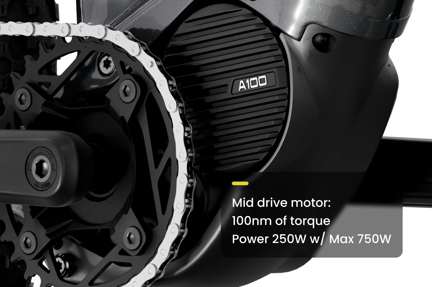 Mid-Drive Motor & Battery: Aventon’s mid-drive motor was designed to give riders full control over their riding experience. With its 250 watts of sustained power, 750 watts at peak power, 36V battery and adjustable three pedal assist level, you can customize your ride to your liking for trail and daily commutes.
