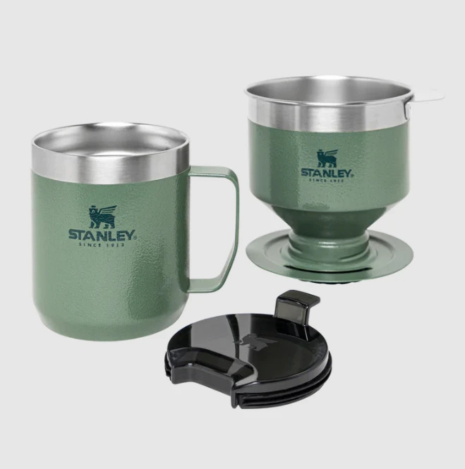 This stainless-steel coffee maker includes a stainless-steel filter and a matching Camp Mug for brewing the perfect cup. No paper filters needed, thus providing your loved ones with sustainable coffee-brewing gear!