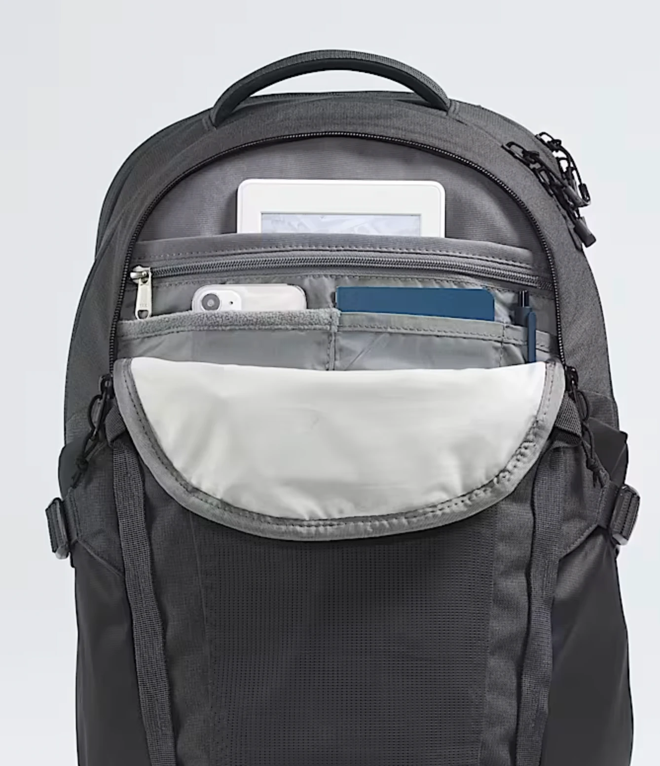 - Front compartment has internal organization with secure-zip pockets and a padded tablet sleeve