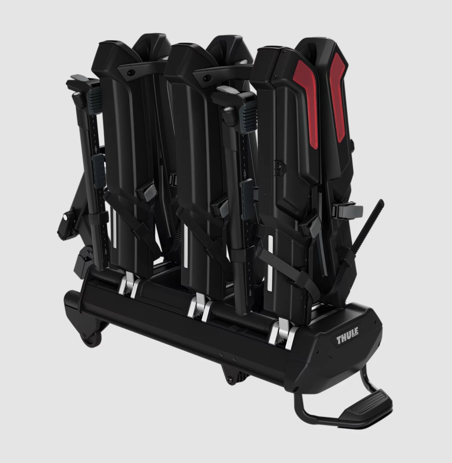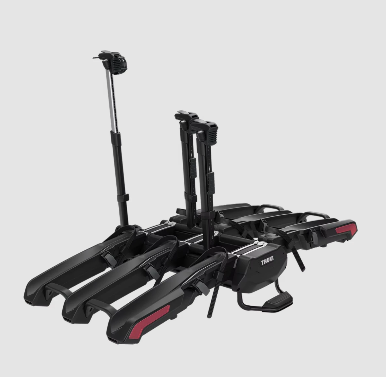 Thule Epos bike rack fits all types of bikes and is fast, easy and convenient to use – it takes minimal effort to mount bikes thanks to an innovative telescopic bike attachment system. The bike arms simply let you attach your bike anywhere on the frame or the rear wheel, providing you with numerous attachment options. You can load and unload up to three bikes in any order – all types of frames and geometries are supported, including ebikes, mountain bikes, gravel bikes, and bikes with fenders and racks.
