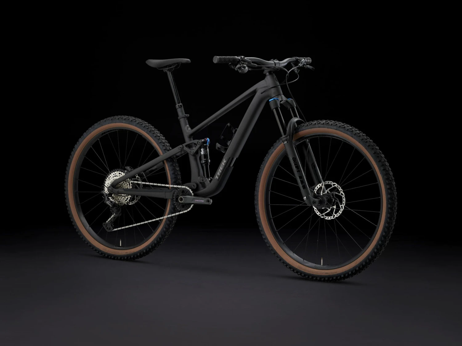 An Alpha Platinum Aluminum frame equipped with a 4-way Mino Link lower shock mount for tweaking geometry and suspension leverage rate. A 130mm FOX Rhythm 34 fork with Float EVOL air spring and GRIP damper, plus 120mm of rear travel from a FOX Performance Float shock with a 3-position damper. It’s topped off with a Shimano XT/SLX 12-speed groupset, hydraulic disc brakes, a Bontrager Line dropper post, and Tubeless Ready Bontrager Line Comp 30 wheels.
